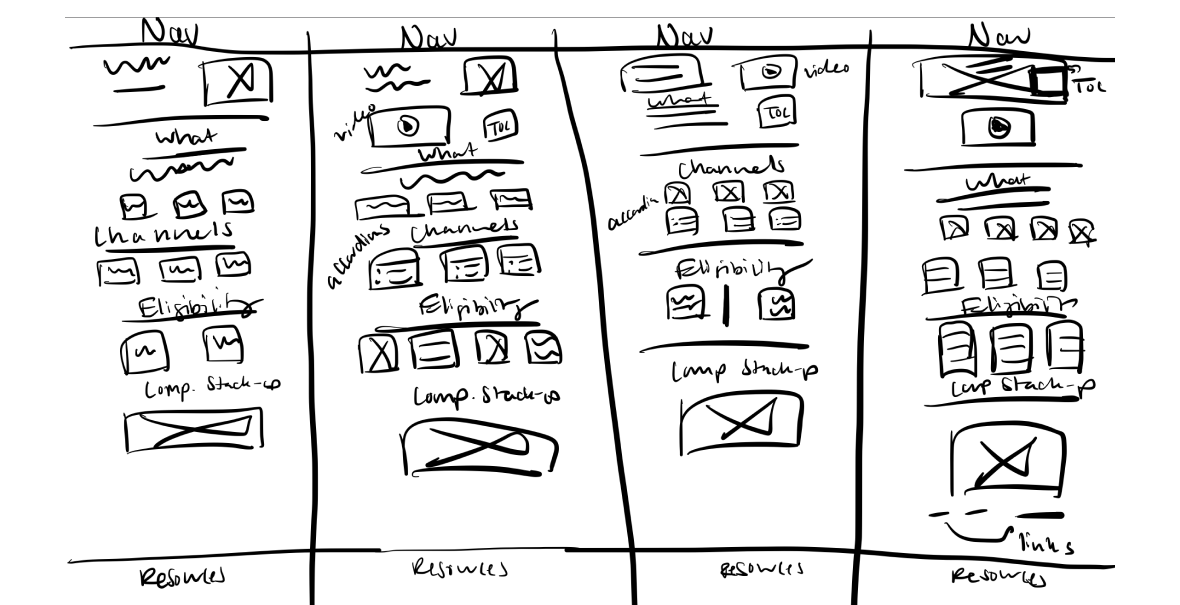 To solve for content relevancy I chose one of the wireframes from the "Crazy Eights" design sprint that solved for strategically arranging the content provided by the sales communications team. The wireframe I chose ensured users can quickly skim and access crucial information without sifting through less relevant content.